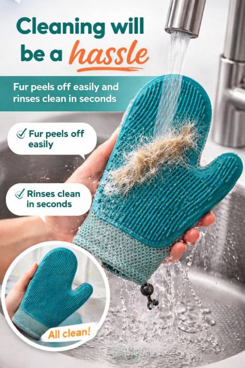 Yes! 🧼 The fur peels off easily, and you can simply rinse the glove under water. It’s clean and ready to use again in seconds.